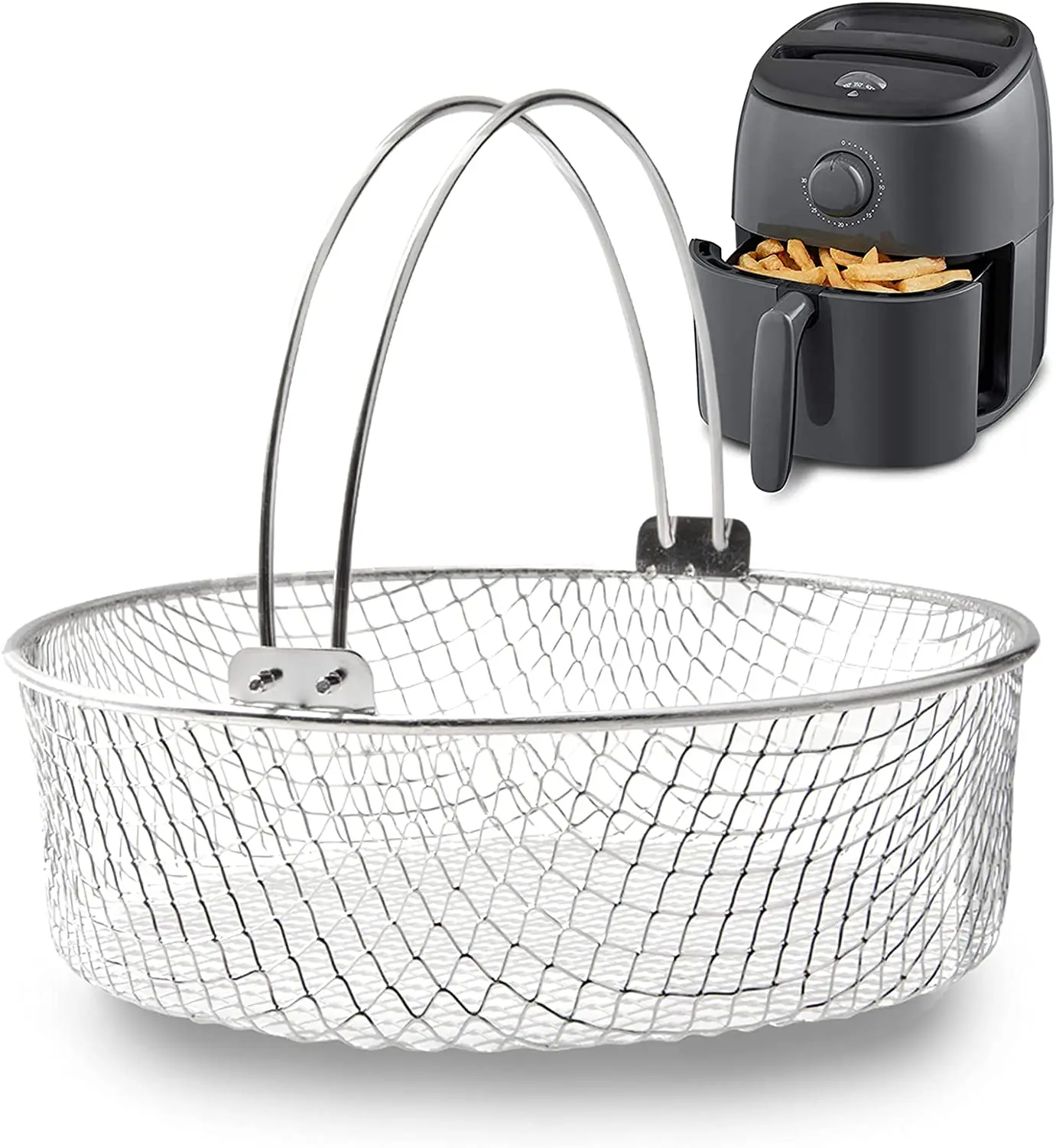 - 가정용 전기 에어 프라이어 바구니 1 개, 스테인레스 스틸 304 메쉬 바구니, 주방 요리 도구 바구니, 에어 프라이어 액세서리