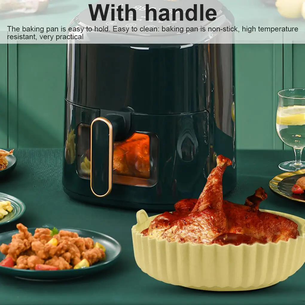 - 핸들 라이너가있는 6.5 인치 에어 프라이어 실리콘 포트 내열성 재사용 가능한 전자 레인지 트레이 야채 치킨 쇠고기 바구니